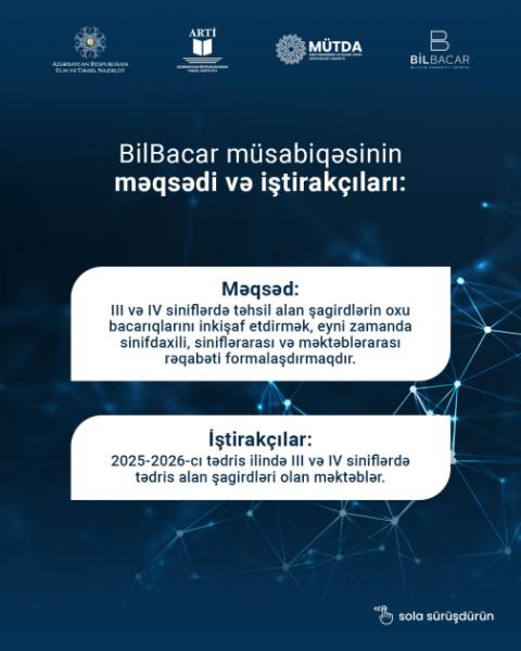 Elm və Təhsil Nazirliyi, Təhsil İnstitutu və Məktəbəqədər və Ümumi Təhsil üzrə Dövlət Agentliyinin birgə təşkilatçılığı ilə “BilBacar” müsabiqəsi yenidən başlanıb.