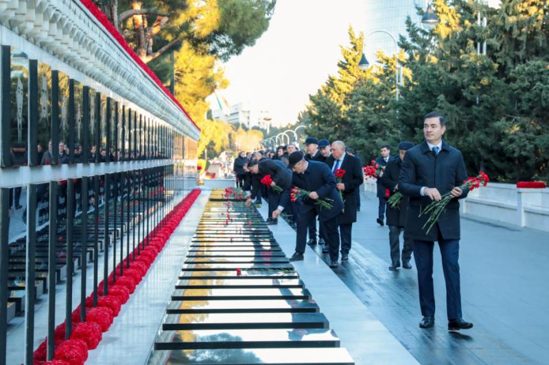 Xeberler.az məlumat verir ki, Azərbaycanın müstəqilliyi, suverenliyi və ərazi bütövlüyü uğrunda canlarından keçmiş Vətən övladlarının müqəddəs xatirəsi dərin ehtiramla yad edilib, məzarları üzərinə qərənfillər düzülüb. XRİTDX adından “Əbədi məşəl” abidə-kompleksinin önünə əklil qoyulub.