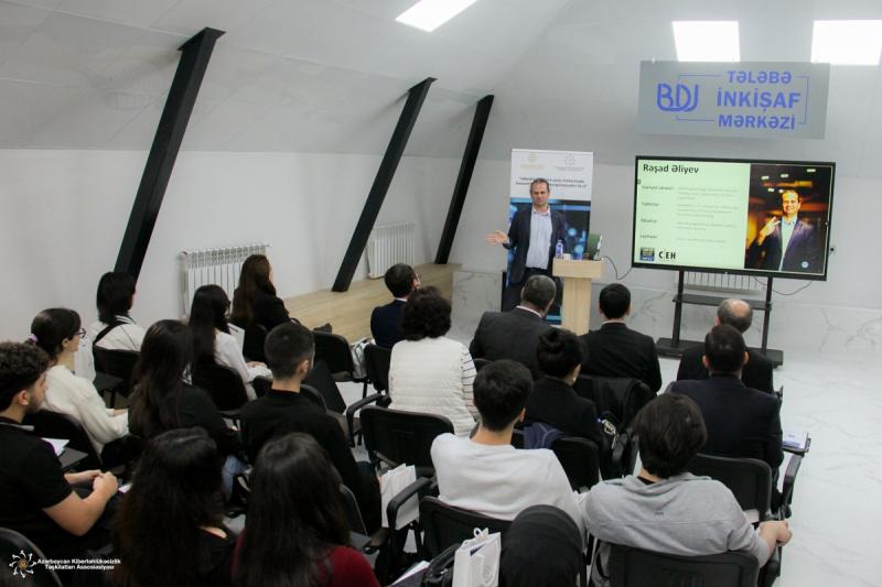 Tədbir çərçivəsində tələbələr kibertəhlükəsizlik və hibrid təhdidlər üzrə mövcud risklərə qarşı effektiv yanaşmalar və texnoloji həllər barədə məlumatlandırılıblar.
