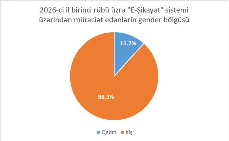 2026-cı ilin birinci rübü üzrə sistemə müraciət edənlərin 88,3%-ni kişilər, 11,7%-ni isə qadınlar təşkil edib.