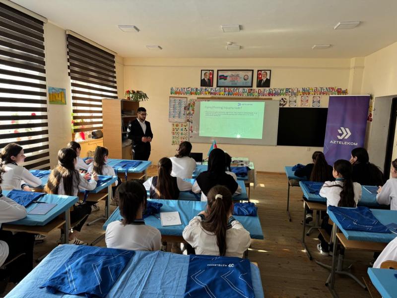 Korporativ sosial məsuliyyət layihələri çərçivəsində keçirilən tədbirdə “Aztelekom”un mütəxəssisləri tərəfindən şagird və müəllim heyətinə şəxsi məlumatların qorunması, sosial şəbəkələrdə davranış qaydaları, onlayn təhlükələrdən qorunma üsulları və məsuliyyətli internet istifadəsi mövzularında məlumatlar təqdim olunub.