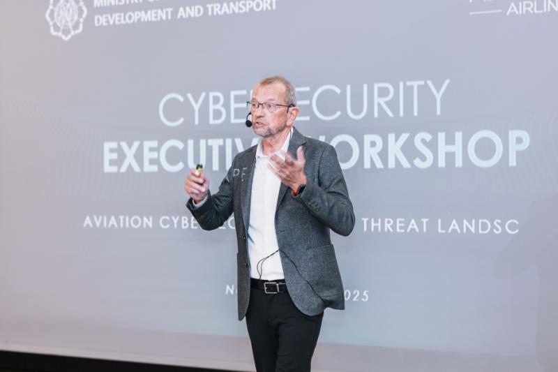 Tədbirdə çıxış edən İRİA-nın sədr müavini Şahin Əliyev aviasiya sahəsində kiberhücum risklərindən bəhs edərək bu sahənin rəhbər şəxslərinin kiberhücumlara qarşı hazırlıqlı olmalarının vacibliyini və bu istiqamətdə kibertəhlükəsizlik təlimlərinin keçirilməsinin əhəmiyyətini vurğulayıb.