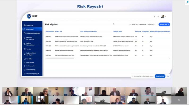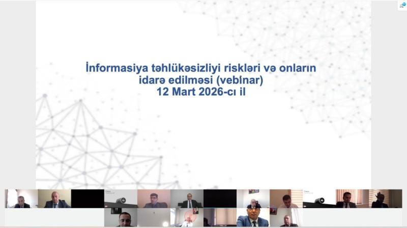 Vebinar zamanı informasiya təhlükəsizliyi riskləri reyestrinin aparılması qaydası, təhdidlər və həllər kataloqu, həmçinin Rəqəmsal Risk Reyestri platforması barədə təqdimatlar keçirilib.