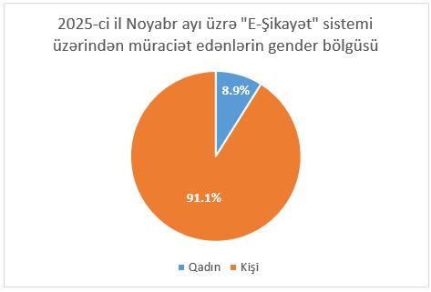 Ümumilikdə isə sistem üzərindən noyabr ayı üzrə 91,1% kişi, 8,9% qadın müraciət edib.