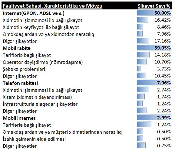 xidmətin dayandırılması (1,74%) və infrastruktur ilə bağlı (1,24%) əsas kateqoriyalara ayrılıb.