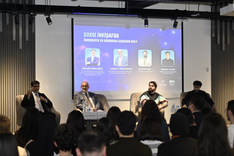 Forum çərçivəsində “Şəxsi inkişafda innovasiya və rəqəmsallaşmanın rolu” mövzusunda panel müzakirəsi keçirilib. Gənclərin şəxsi inkişafında innovativ və rəqəmsal layihələrin rolu, rəqəmsallaşma dövründə fərdi inkişaf üçün strateji yanaşmalar, innovasiya ekosisteminin şəxsi inkişafa təsiri, eləcə də rəqəmsal bacarıqların və innovativ düşüncənin investisiya dəyəri ətrafında müzakirələr aparılıb. Çıxışçılar innovasiya və rəqəmsal dəyişimin insan kapitalının inkişafında rolu, gənclərin bu proseslərə adaptasiyası və mövcud imkanlar haqqında məlumat veriblər.